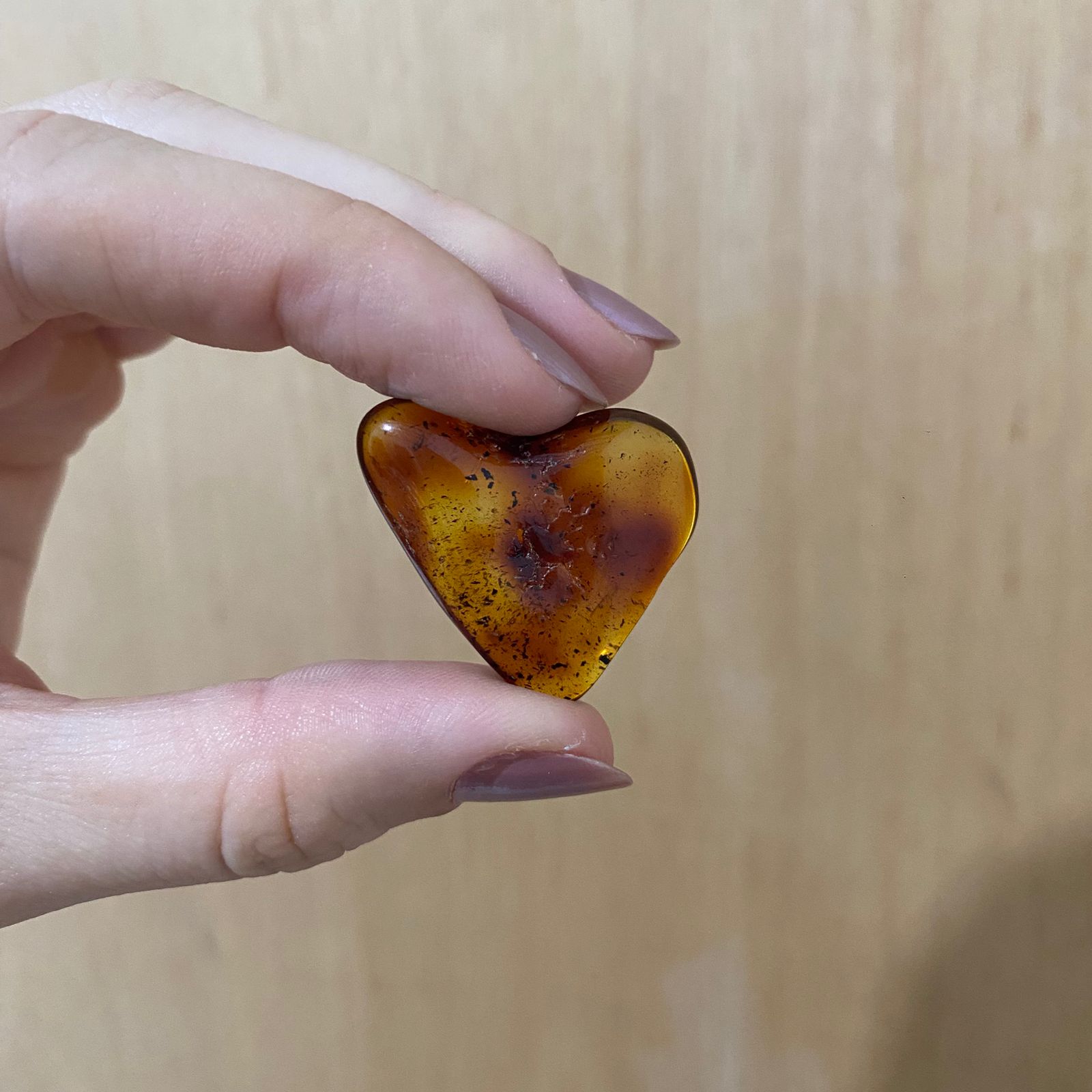 O âmbar é uma resina fóssil formada há milhões de anos, apreciada por sua beleza quente e tonalidades que variam do mel dourado ao caramelo intenso. Cada peça carrega a história da natureza, podendo inclusive apresentar inclusões naturais que a tornam ainda mais rara e fascinante.
