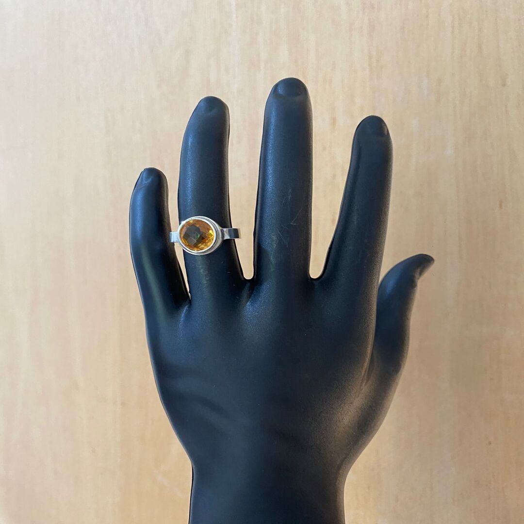 Radiante e cheio de vida, este anel de citrino encanta pelo seu tom amarelo dourado, que ilumina a joia com elegância e energia. A pedra reflete a luz de forma intensa, criando um brilho vibrante que transmite alegria, confiança e sofisticação.