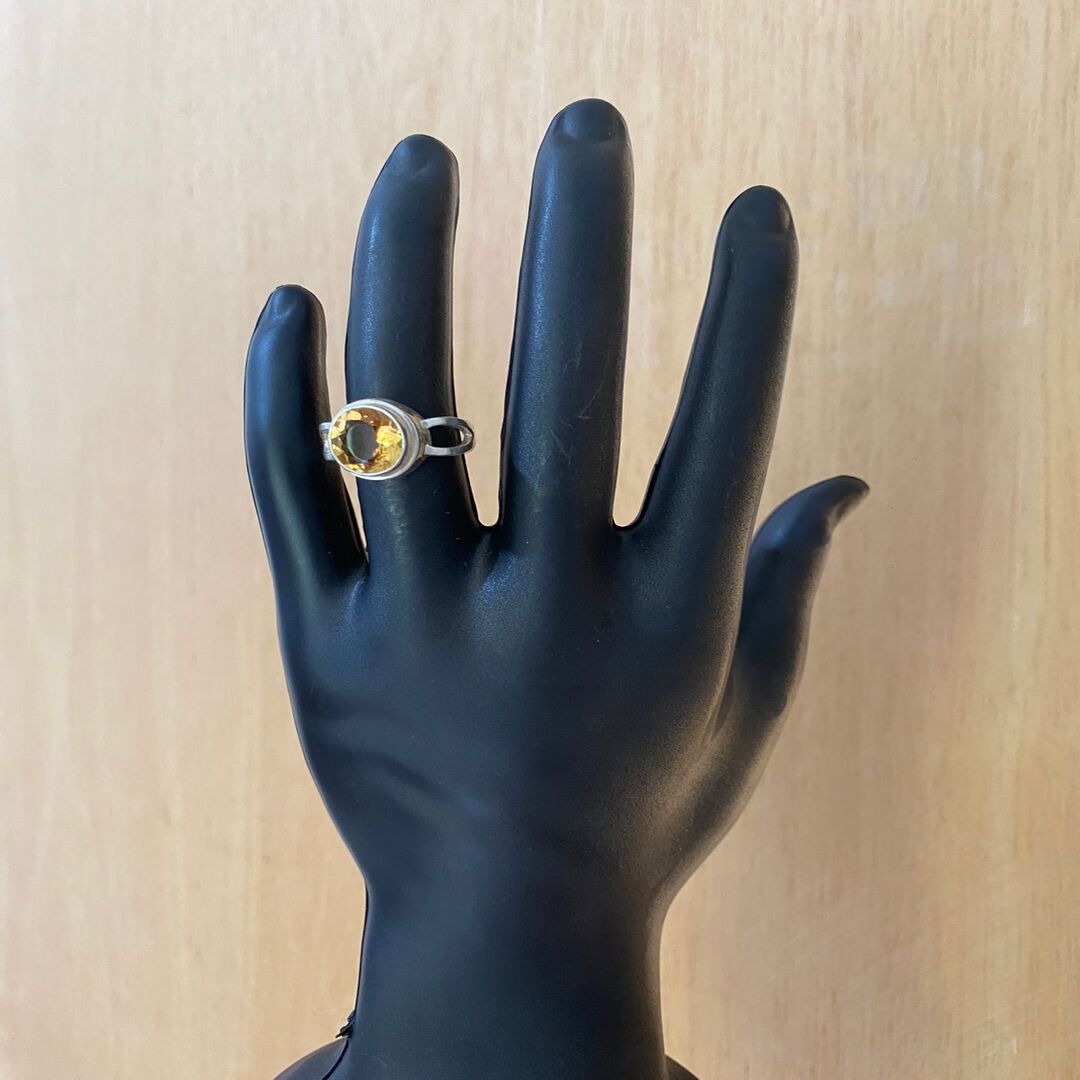 Iluminado e cheio de personalidade, este anel de citrino amarelo encanta pelo seu tom dourado vibrante e pelo design de aro vazado, que traz leveza e um toque contemporâneo à peça. A pedra central reflete a luz com intensidade, realçando o brilho natural do citrino e criando um visual alegre e sofisticado.