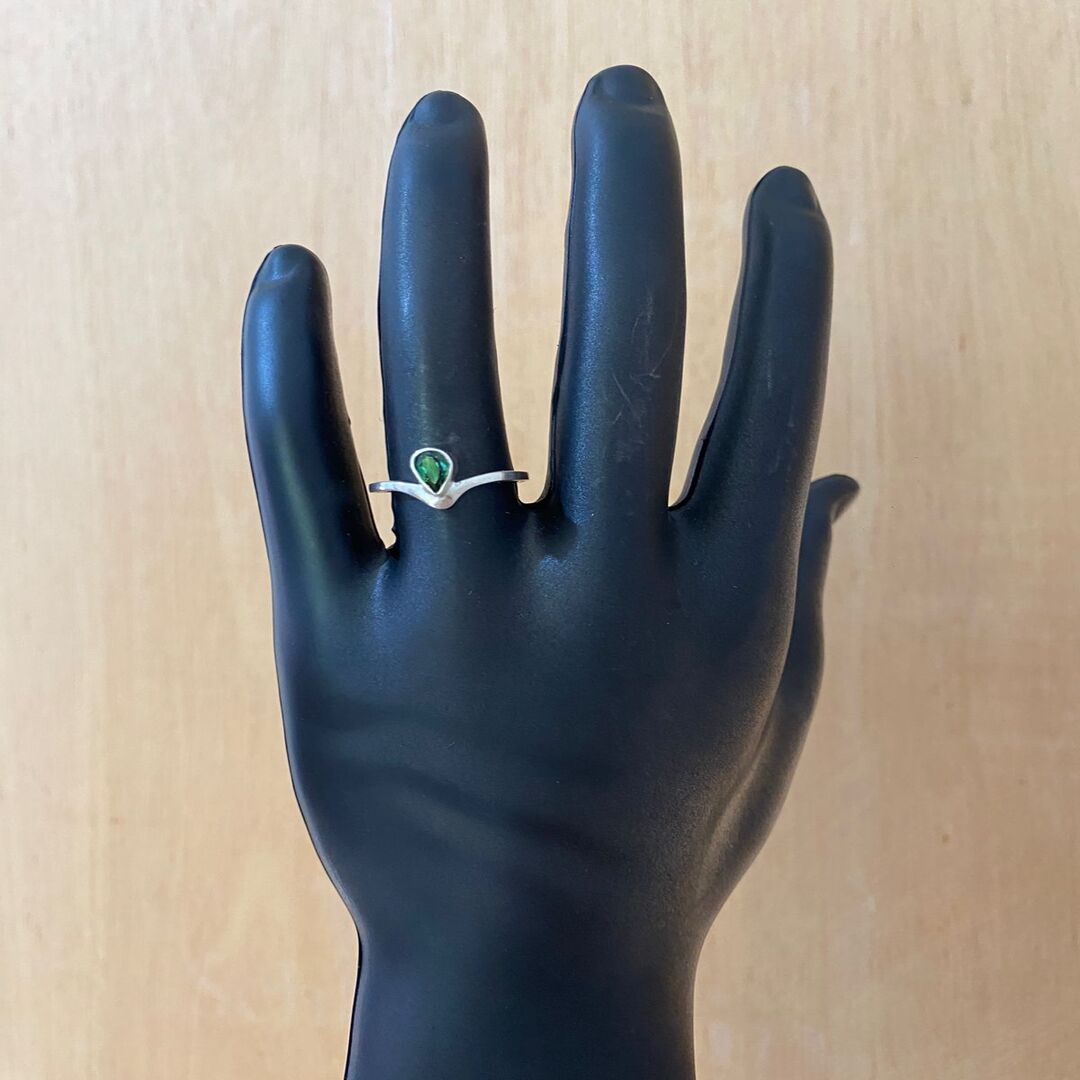 Delicado e cheio de personalidade, este anel artesanal em prata destaca a beleza natural da esmeralda, pedra conhecida por seu tom verde intenso e sofisticado. Produzido manualmente, cada detalhe do aro revela o cuidado do trabalho artesanal, tornando a peça única e exclusiva.